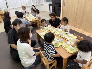 保護者の皆さんとこどもたちで 遊んだり一緒に給食を食べたり 楽しい一日を過ごしました。