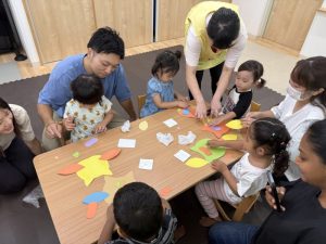 保育園の隣に富里市中央公民館があります。 児童室をお借りして楽しく遊ばせてもらっています。