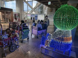 スクルドエンジェル保育園富里七栄園は 中央公民館や市役所がすぐなので お散歩カーでひとまわりすることが あります。 役所の入り口をのぞいてみたら キラキラ光るかわいいスイカが。 お邪魔しますと声を掛け、 受付横のとみちゃんをみつめる こどもたちでした。![]()