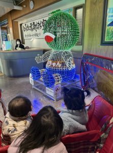 スクルドエンジェル保育園富里七栄園は 中央公民館や市役所がすぐなので お散歩カーでひとまわりすることが あります。 役所の入り口をのぞいてみたら キラキラ光るかわいいスイカが。 お邪魔しますと声を掛け、 受付横のとみちゃんをみつめる こどもたちでした。![]()